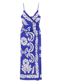 paisley-print midi skirt Highlights - Royal blue - Concealed side zip fastening - Gathered detailing - V-neck - Sleeveless Made in Italy Composition Viscose 96%, Elastane 4% SIZE & FIT Model measurements Height 5 ft 10 in(1.79 m) Bust/Chest 35.43 in(90 cm) Hips 35.03 in(89 cm) Waist 25.19 in(64 cm) FittingInformation Designed for a close fit throughout Made from a lightweight non-stretch fabric