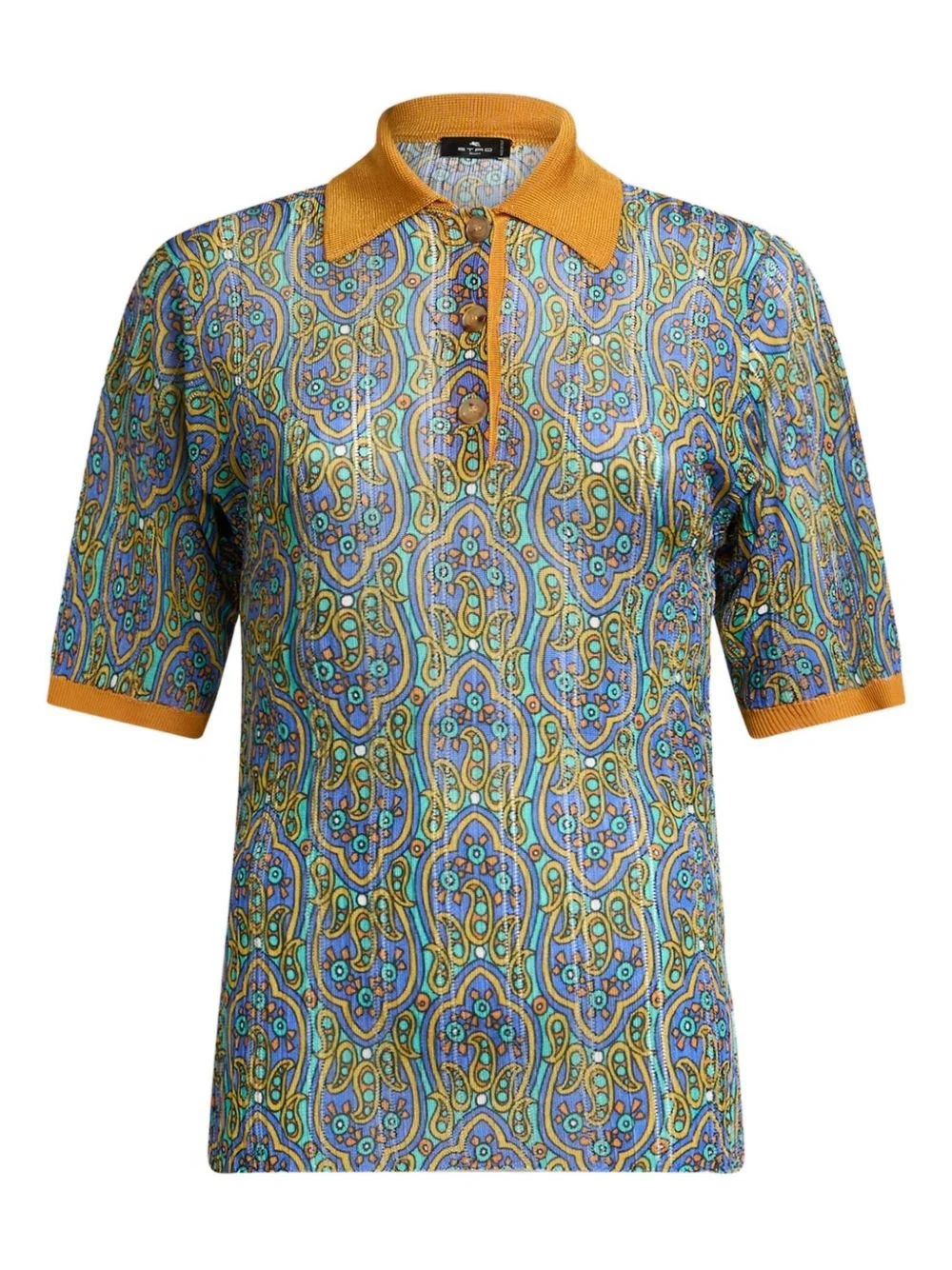 printed knitted polo shirt Highlights - Burnt orange - Front button placket - Polo collar - Short sleeves - Straight hem Made in Italy Composition Viscose 100%