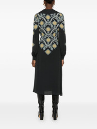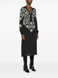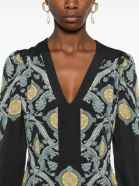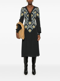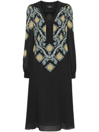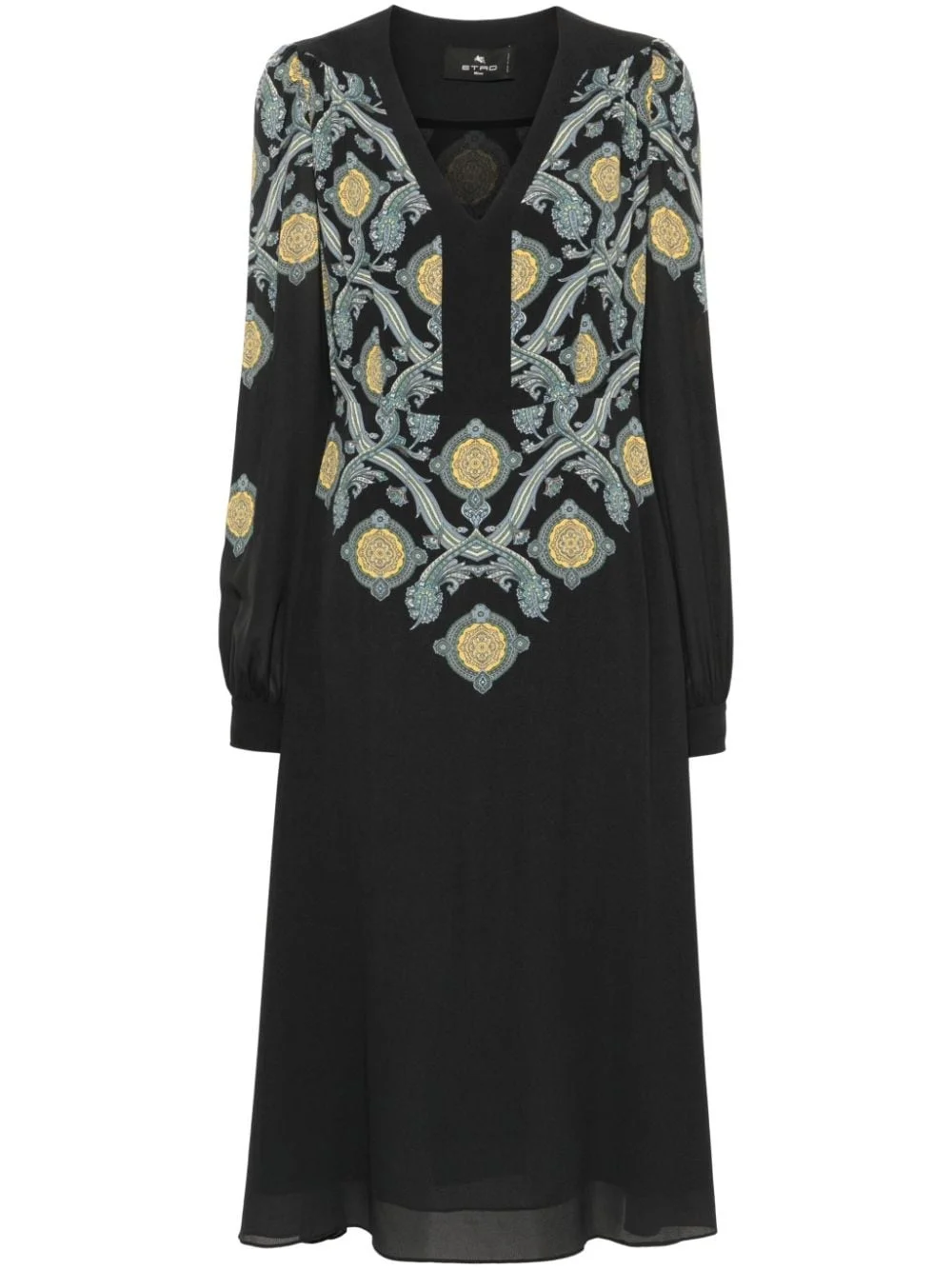 paisley midi dress Highlights - Black/multicolour - Crepe texture - Paisley print - V-neck - Long sleeves - Buttoned cuffs - Mid-length - Straight hem - Concealed side zip fastening Made in Italy Composition Outer: Viscose 100% Lining: Polyester 100% SIZE & FIT Model measurements Height 5 ft 10 in(1.78 m) Bust/Chest 31.49 in(80 cm) Hips 37 in(94 cm) Waist 23.62 in(60 cm) FittingInformation Designed for a close fit at the chest and waist with a loose fit at the hip Made from a midweight non-stretch fabric This piece fits true to size – take your usual size