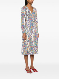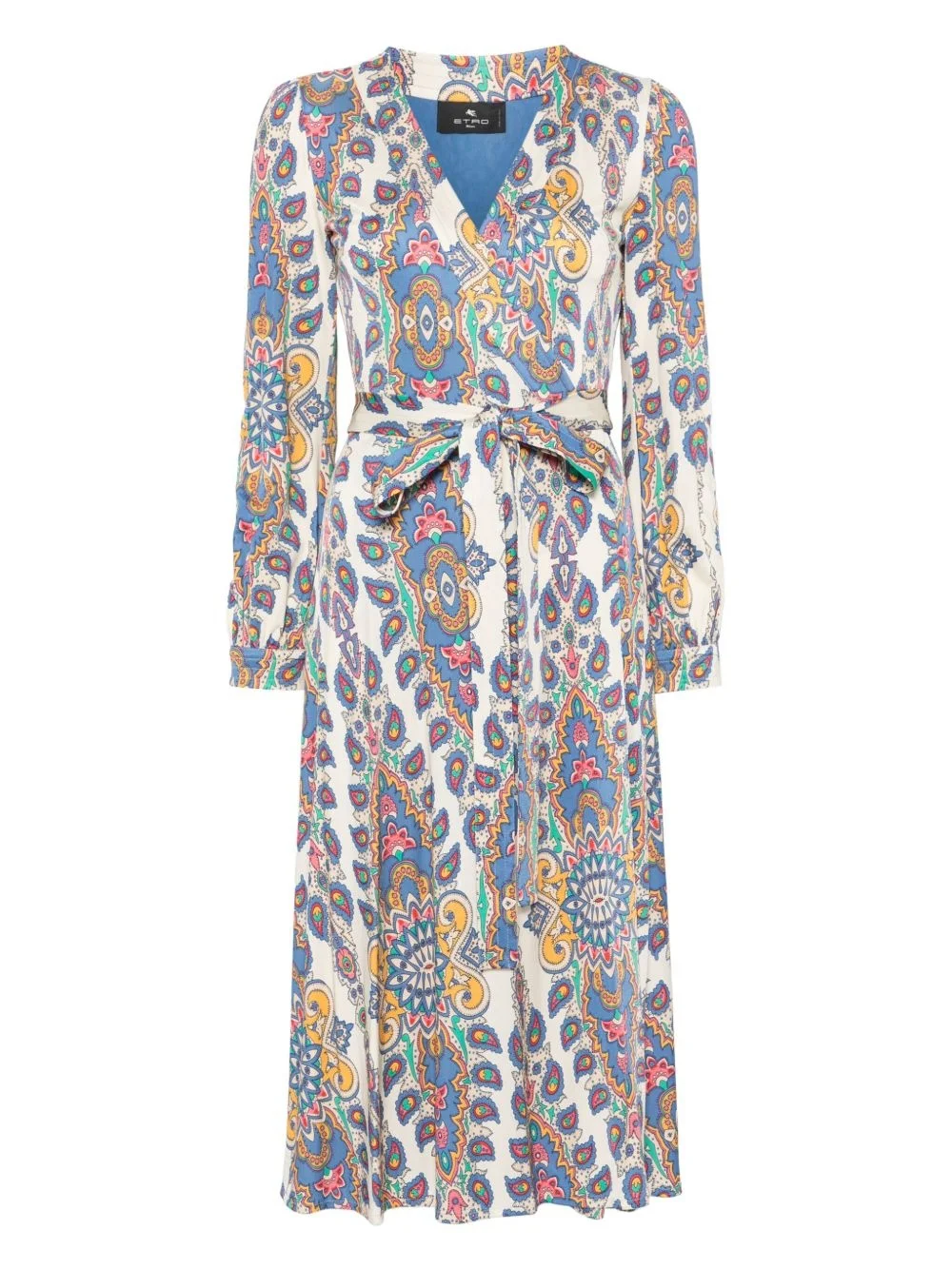paisley-print midi dress Highlights - Light beige - Self-tie fastening - Wrap design - Buttoned-cuff sleeves - V-neck Made in Italy Composition Outer: Viscose 96%, Elastane 4% Lining: Viscose 100% SIZE & FIT Model measurements Height 5 ft 11 in(1.8 m) Bust/Chest 31.49 in(80 cm) Hips 35.82 in(91 cm) Waist 24.8 in(63 cm) FittingInformation Designed for a wraparound style that can be adjusted to your preference Made from a midweight stretch fabric, this piece offers elasticity and flexibility when worn