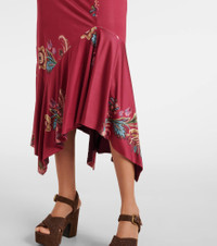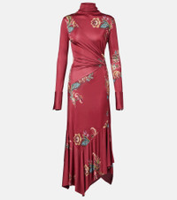 This long-sleeved Etro midi dress showcases a distinctive print that captures the brand’s signature romantic and vibrant spirit. Finished with an elegant turtleneck and one-button cuffs, is a refined statement piece. Product Details - Material: 96% viscose, 4% elastane - Care instructions: dry clean - Made in Italy - Designer color name: X0865 - Item color: burgundy, multicolor - Lining: 100% viscose - Sleeves: long-sleeved - Cuff: one button - Collar: turtleneck - Item number: P01050830 Size & Fit - True to size - Cinched waist - Slightly stretchy fabric - Height of model is 179cm-70.5" and wears a size IT 40
