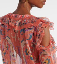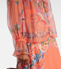 This blouse from Etro is made from a lightweight silk fabric and printed with one of the house's vibrant motifs. The style is finished with ruffled trims for added volume and charm. Product Details - Material: 100% silk - Care instructions: dry clean - Made in Italy - Designer color name: Printed On Pink Base - Item color: pink, multicolor - Collar: V-neck - Cuff: buttoned - Closure: buttoned front - Item number: P01050828 Size & Fit - True to size - Sheer - Designed for a loose fit - Non-stretchy fabric - Falls below the hip - Height of model is 175cm-69" and wears a size IT 40