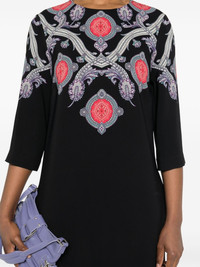 paisley-print cady midi dress Highlights - Black/multicolour - Cady texture - Paisley print - Round neck - Half-length sleeves - Two side inset pockets - Straight hem - Rear zip fastening Made in Italy Composition Outer: Viscose 96%, Elastane 4% Lining: Silk 100% SIZE & FIT Model measurements Height 5 ft 11 in(1.8 m) Bust/Chest 31.49 in(80 cm) Hips 36.61 in(93 cm) Waist 24.4 in(62 cm) FittingInformation Designed for a slim fit that sits just away from the body offering a close yet comfortable fit Made from a midweight fabric This piece fits true to size – take your usual size