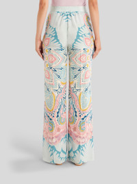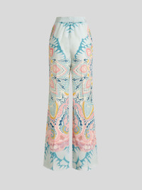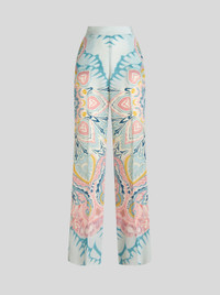 Silk palazzo trousers with a placed floral and lucky clover pattern print. PRODUCT DETAILS • 100% silk • Regular fit • Elasticated waist at rear • Hidden side zip fastening • Side pockets • Made in Italy • The model is 178 cm tall and wears size 40