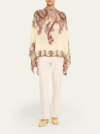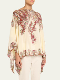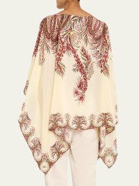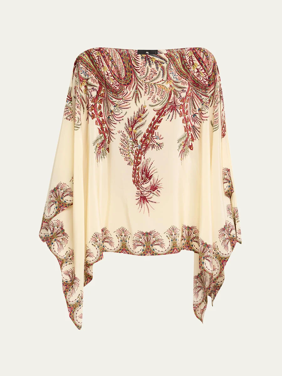Etro poncho in printed silk V neckline Long sleeves Handkerchief hem Pullover style Silk Professional cleaning recommended Made in Italy Online Inquiries: BGS21_D5B46| Store Inquiries: #5056988