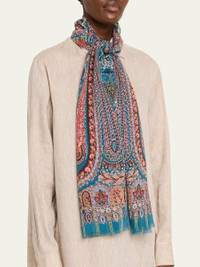 Etro scarf distinguished by a vibrant paisley print Approx. 66.9"L x 27.6"W Eyelash fringe trim Can be styled multiple ways Silk Professional cleaning recommended Made in Italy Online Inquiries: BGS21_D5BFX| Store Inquiries: #5062773