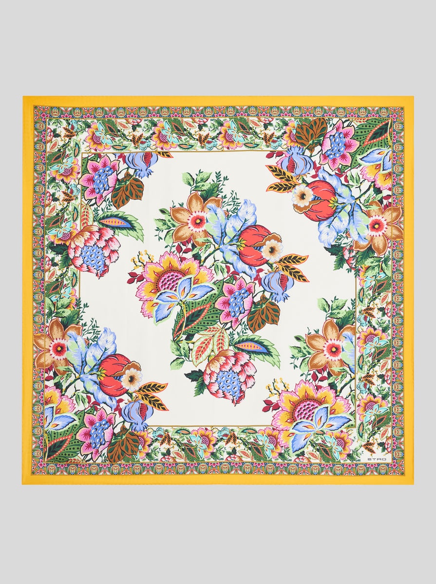 Silk twill scarf embellished with a multicoloured bouquet-inspired print. PRODUCT DETAILS • 90 x 90 cm / 35.43 x 35.43 inches • 100% silk • Made in Italy
