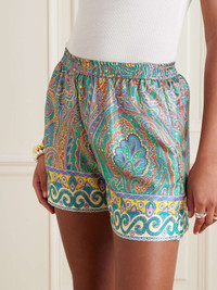 EDITORS'NOTES Etro’s shorts are cut for a straight-leg fit from silk-twill and printed with signature paisley motifs. They have an elasticated waistband, on-seam pockets and side slits. Wear yours with an understated top. SIZE & FIT Model measurements: - Fits true to size, take your normal size - Mid-rise, designed for a slightly loose fit - Elasticated at the waist for a comfortable fit - Lightweight, fluid, non-stretchy fabric - Model is 180cm/ 5'11" and is wearing a size Small - Bust: 83cm/ 32.5” - Waist: 66 cm/ 26” - Hip: 95cm/ 37.5” DETAILS & CARE - Multicolored silk-twill - Pull on - 100% silk - Dry clean