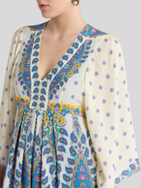 Long dress in pure silk crepe de chine. This garment features a decorative floral motif on the sleeves and bodice and a medallion and Paisley print on the skirt. • Loose fit • V-neck • Three quarter-length sleeves • Made in Italy • The model is 5' 9½" (177 cm) tall and wears a size 40 PRODUCT DETAILS • 100% silk • Lining: 100% polyester