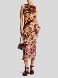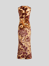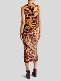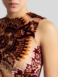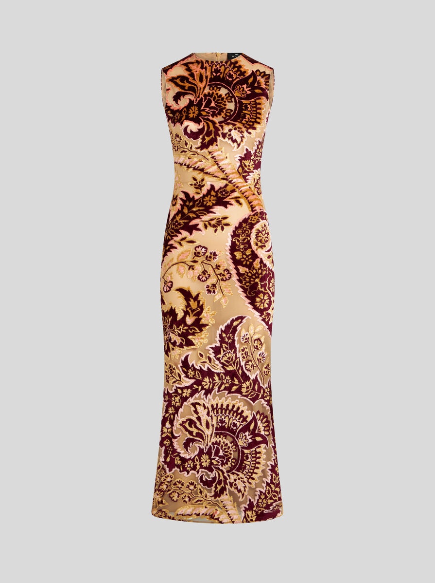 Midi-length stretch tulle sheath dress with jacquard velvet Paisley motif. The tulle jacquard fabric with see-through effect makes it stand out. PRODUCT DETAILS • 93% viscose, 4% polyamide, 3% elastane • Lining: 86% polyamide, 14% elastane