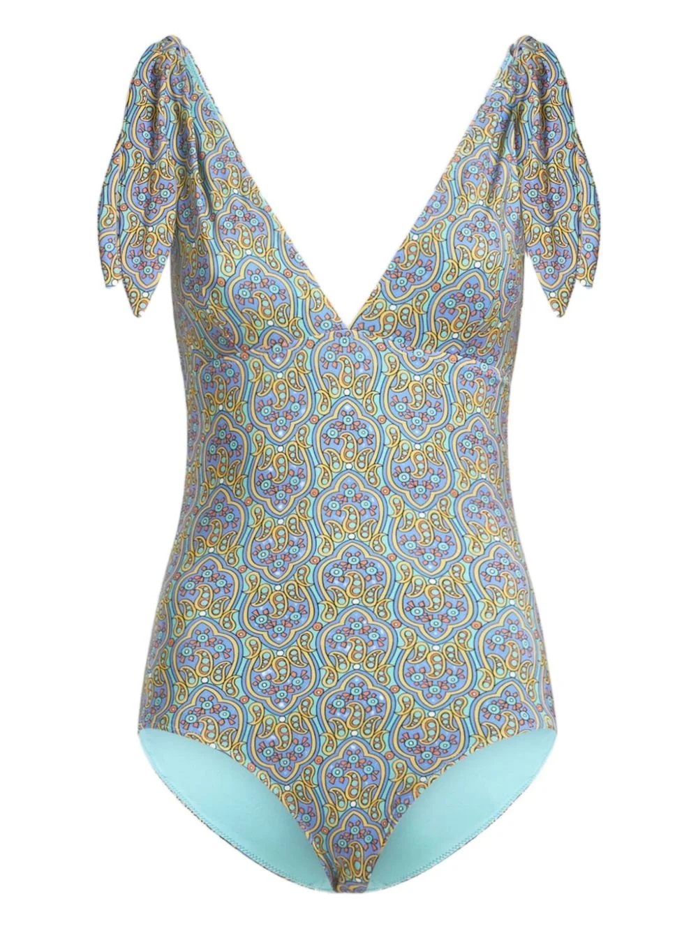printed tie-shoulder swimsuit Highlights - Blue - Paisley print - V-neck - Tie detail on shoulders - Be mindful to try on swimwear over your own garments. Made in Italy Composition Outer: Polyamide 72%, Elastane 28% Lining: Polyamide 75%, Elastane 25% Washing instructions Read Manufacturer Guidelines
