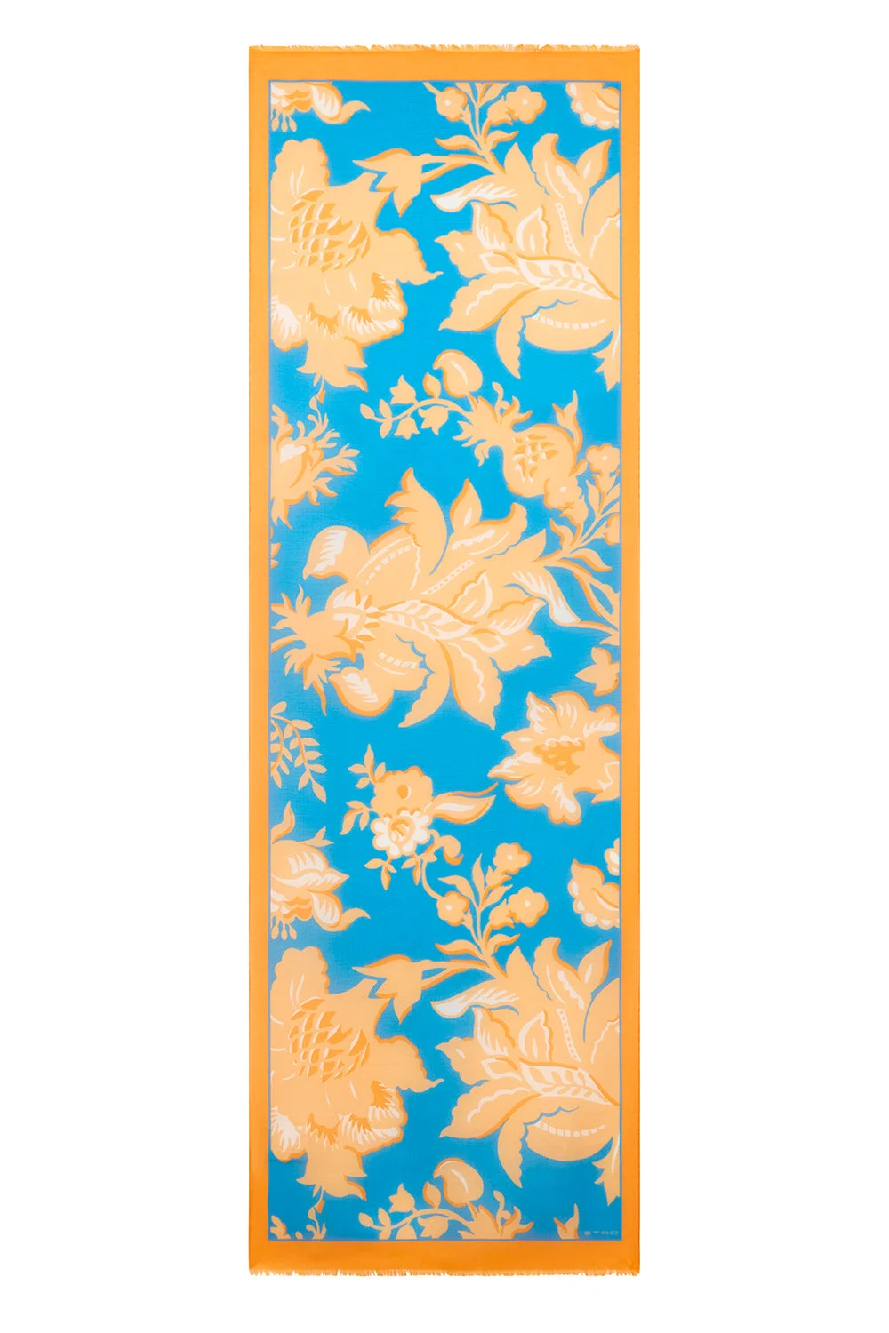 DETAILS AND INSIGHT Etro printed tosca scarf in blue print. 57% Cotton, 43% Silk Professionally Cleaned Made In Italy Style WATA0005-AKG10-X0888