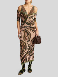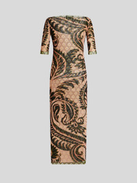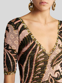 Slim-fitting dress in double-layered tulle fabric with two prints that combine the Angkor and Aurea motifs. PRODUCT DETAILS • 100% polyamide • Slim fit • V-neck • 3/4 sleeves • Made in Italy • The model is 178 cm / 70.07 inches tall and wears a size 40 (IT)