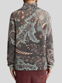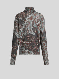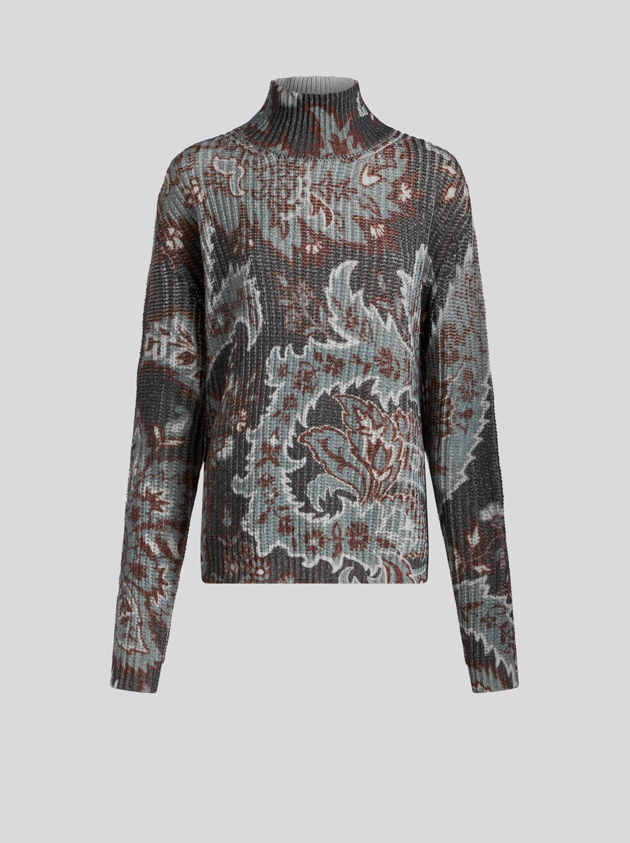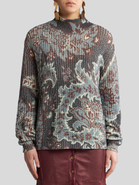Ribbed wool sweater with decorative floral Paisley print. PRODUCT DETAILS • 100% wool