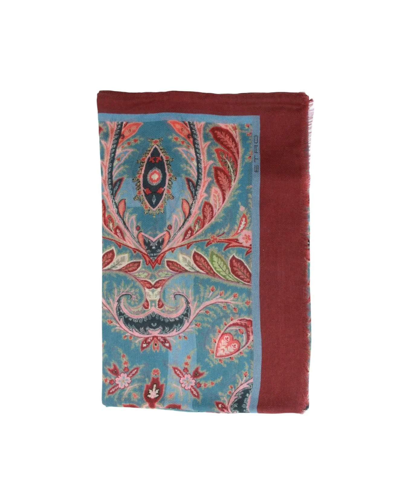 Red and blue wool scarves from Etro featuring square shape and print. Composition: _, 90% Wool, 10% Cashmere Made in: Italy Color: BLUE/AUBERGINE Model number: WATA0009AKB11X0884