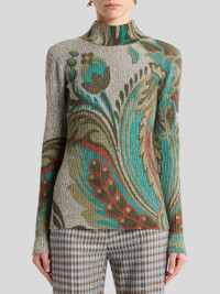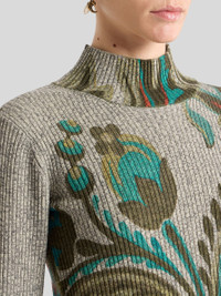 RIBBED WOOL TURTLENECK SWEATER WITH DAFFODIL PRINT