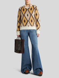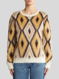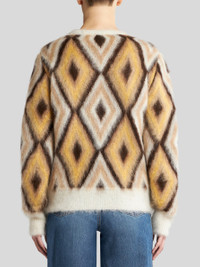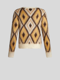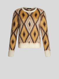 Round neck mixed wool jacquard jumper decorated by a geometric diamond pattern. PRODUCT DETAILS • 68% wool, 32% polyamide • Regular fit • Round neck • Made in Italy • The model is 178 cm / 70 inches tall and wears size 40