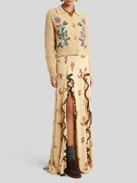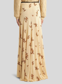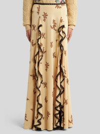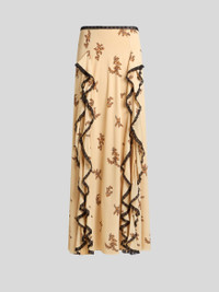 Extra-long skirt in lightweight jersey with all-over floral print. This model is embellished with deep front slits with draped effect and lace edging, which also adorns the waist. • Regular fit • High waist • Rear zip closure • Made in Italy • The model is 5' 9½" (177 cm) tall and wears a size 40 PRODUCT DETAILS • 100% viscose • Lace: 90% cotton, 10% nylon • Lining: 100% viscose