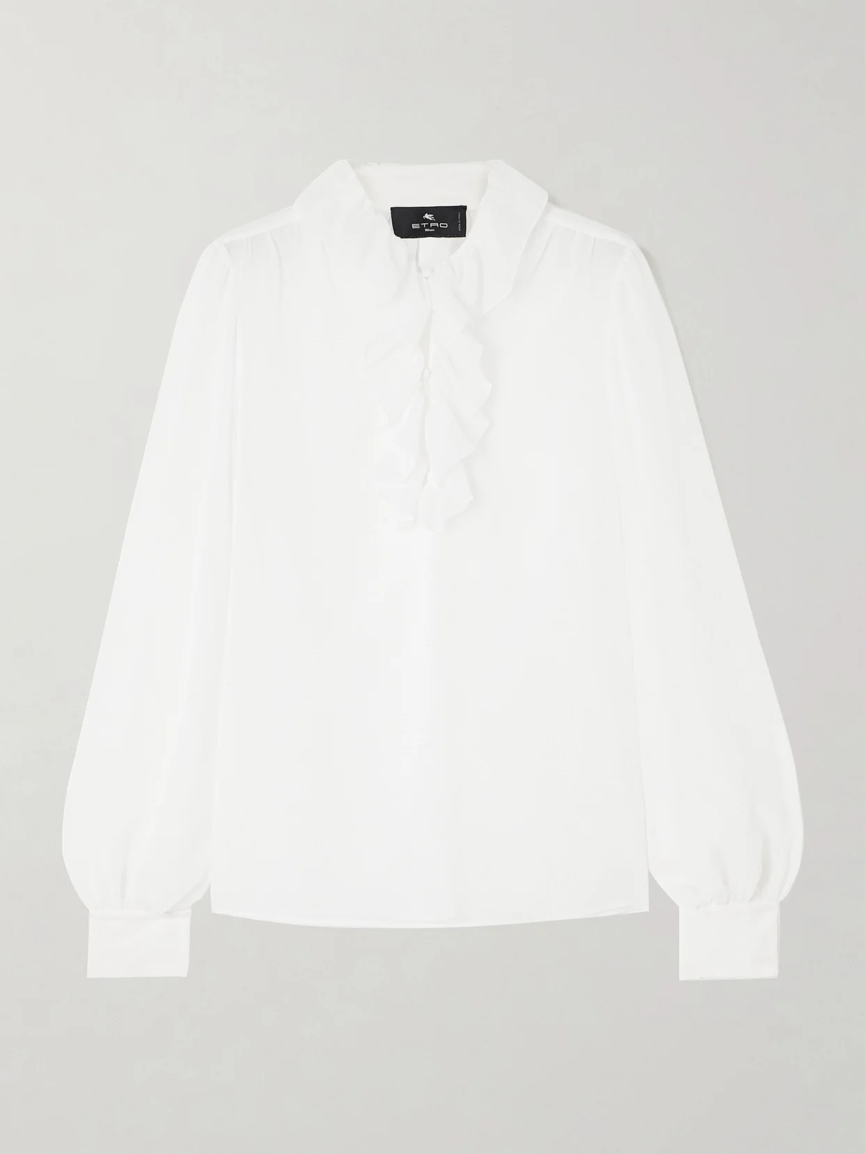 EXCLUSIVE AT NET-A-PORTER. Our exclusive capsule with Etro is a celebration of the label's heritage. This lightweight blouse is jacquard-woven with micro checks and has a floaty shape emphasized by a ruffled neckline. The covered buttons lend a chic, vintage feel.