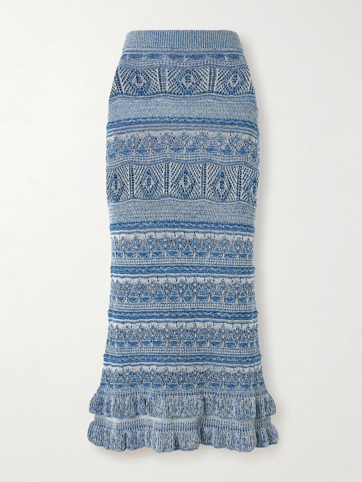Etro's skirt is crocheted with flouncy ruffles that trace the maxi hem. It's made from lightweight, breathable cotton that's perfect for warm days.