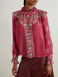 Etro's blouse feels nonchalant yet artfully detailed. It’s cut from lightweight chiffon and printed with swirls of paisley. The turtleneck, shoulders and blouson cuffs are traced with flouncy ruffles. Size & Fit - Fits true to size, take your normal size - Cut for a relaxed fit - Lightweight, semi-sheer, non-stretchy fabric - Model is 180cm/ 5'11" and is wearing an IT 40 Model measurements: - Bust: 80cm/ 31.5" - Waist: 65cm/ 25.5" - Hip: 89cm/ 35" Details & Care - Multicolored chiffon - Button fastenings through front - 80% viscose, 20% silk - Unlined - Dry clean