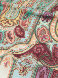 Cashmere and silk scarf with multicoloured Paisley print. Small fringe-trimmed edges. PRODUCT DETAILS • 45 x 140 cm / 17.71 x 55.11 iches • 70% cashmere, 30% silk • Made in Italy