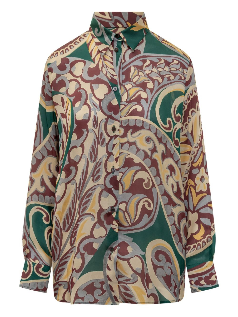 paisley-print silk shirt Highlights - Beige - Paisley print - Button fastening - Long sleeves - Buttoned cuffs - Classic collar Made in Italy Composition Silk 100% Washing instructions Read Manufacturer Guidelines