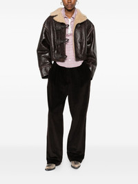 shearling-collar leather jacket