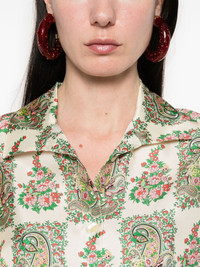 floral-print shirt Highlights - Light beige - Front button fastening - Camp collar - Short sleeves Made in Italy Composition Silk 100% SIZE & FIT Model measurements Height 5 ft 9 in(1.76 m) Bust/Chest 32.28 in(82 cm) Hips 35.43 in(90 cm) Waist 25.19 in(64 cm) FittingInformation Designed to be unstructured, offering a loose fit throughout Made from a lightweight non-stretch fabric
