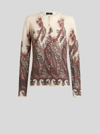 Cardigan in silk- and cashmere-blend fabric with distinctive, placed, floral Paisley print. • Regular fit • Crew-neck • Button closure • Ribbed edging • Made in Italy • The model is 5' 9½" (177 cm) tall and wears a size 40 PRODUCT DETAILS • 55% silk, 45% cashmere