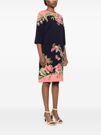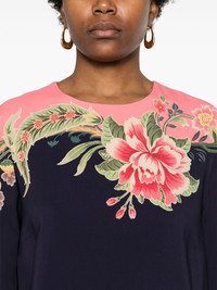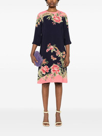 floral-print silk midi dress Highlights - Navy blue/pink/green - Silk - Satin finish - Floral print - Round neck - Long sleeves - Full lining - Two side inset pockets - Concealed rear hook and zip fastening Made in Italy Composition Outer: Viscose 96%, Elastane 4% Lining: Silk 100% SIZE & FIT Model measurements Height 5 ft 11 in(1.8 m) Bust/Chest 31.49 in(80 cm) Hips 36.61 in(93 cm) Waist 24.4 in(62 cm) FittingInformation Designed to be unstructured, offering a loose fit throughout Made from a midweight fabric This piece fits true to size – take your usual size