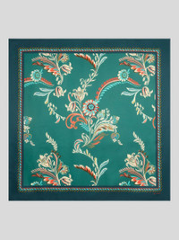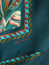 Pure silk scarf with decorative daffodil print. Presented at the Autumn-Winter 25 Runway Show, this accessory is complete with a contrasting geometric-patterned edge and the ETRO logo in the corner. • Size: 35.4 x 35.4 inches (90 x 90 cm) • Made in Italy PRODUCT DETAILS • 100% silk
