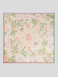 Silk shawl with ton-sur-ton Paisley pattern, embellished by a floral print with hummingbirds and dragonflies framed by the ETRO logo. PRODUCT DETAILS • 135 x 135 cm • 100% silk • Made in Italy Sku: 222R1001095610650