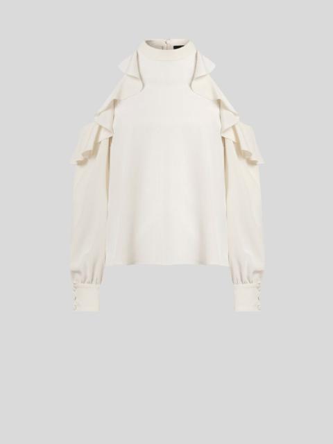 SILK TOP WITH OPEN SHOULDERS AND RUFFLES