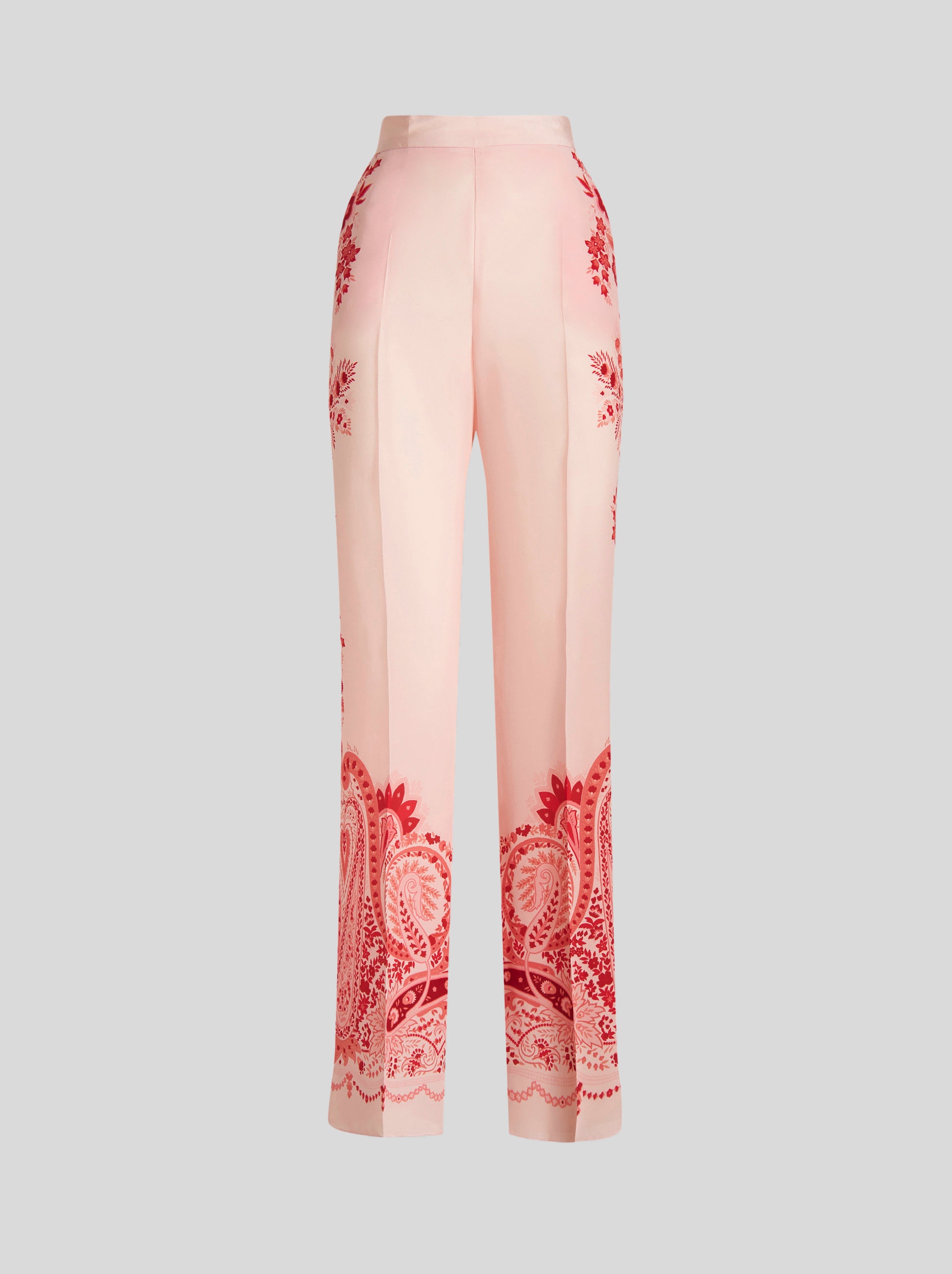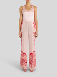 Silk palazzo trousers with a placed floral pattern print. PRODUCT DETAILS • 100% silk • Regular fit • Elasticated waist at rear • Hidden side zip fastening • Side pockets • Made in Italy • The model is 178 cm tall and wears size 40