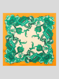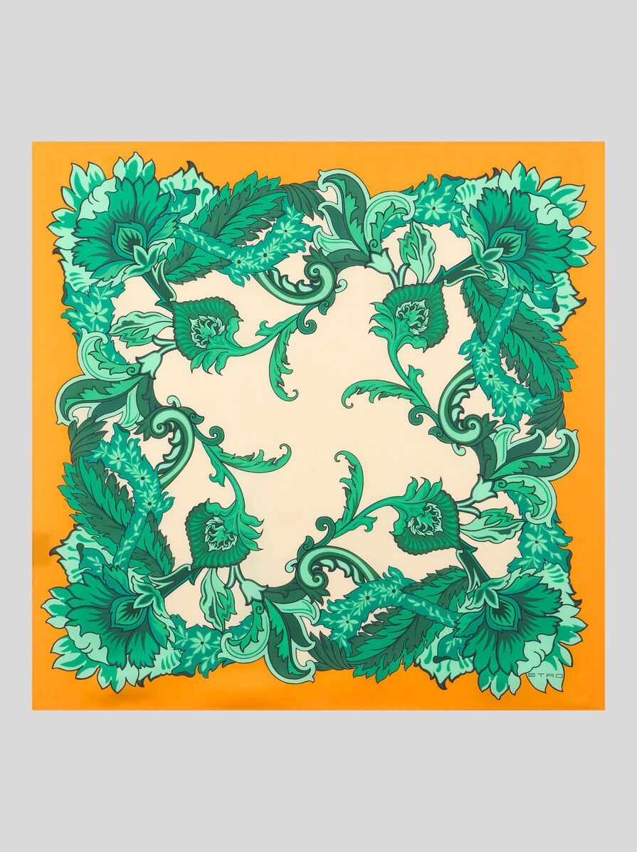 Pure silk twill scarf embellished with floral print and contrasting edging. This accessory, presented at the Spring-Summer 25 Women's Runway Show, is finished with the ETRO logo in the corner. • Size: 27.6 x 27.6 inches (70 x 70 cm) • Made in Italy PRODUCT DETAILS • 100% silk