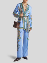 Wraparound-style jacket with detachable waist belt. Made from pure silk twill and lined with the same material, this garment features a contrasting, placed floral Paisley print and a micro medallion motif along the outer edges and on the belt. • Regular fit • Fastened with detachable belt • Patch pockets on the front • Made in Italy • The model is 5' 9½" (177 cm) tall and wears a size 40 PRODUCT DETAILS • 100% silk • Lining: 100% silk