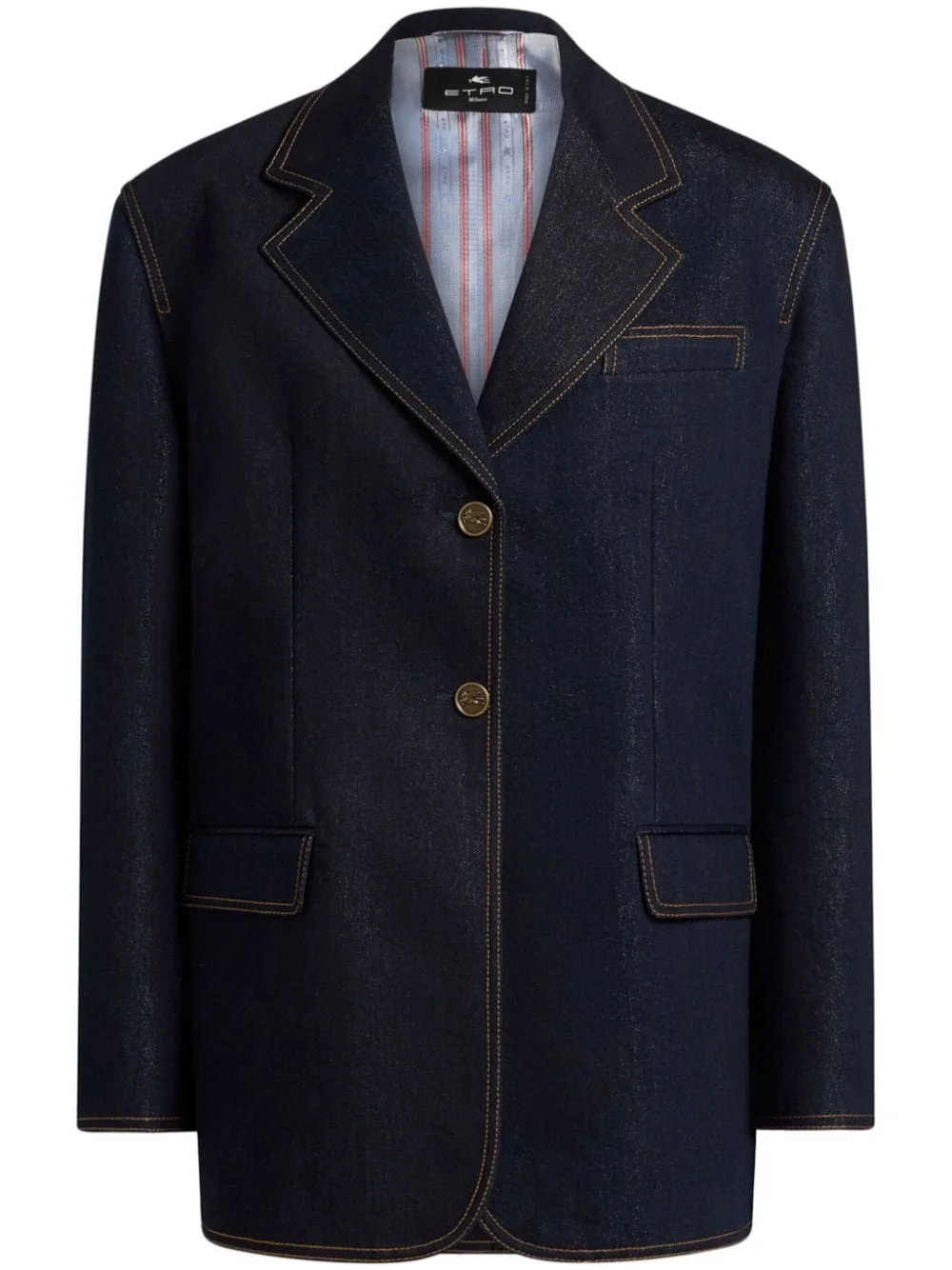 denim blazer Highlights - Indigo blue - Cotton - Denim - Contrast stitching - Front button fastening - Notched lapels - Two side flap pockets - Long sleeves - Central rear vent - Straight hem Made in Italy Composition Cotton 100%