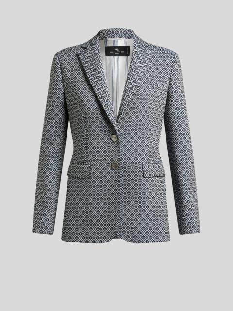 SINGLE-BREASTED STRETCH COTTON JACQUARD JACKET WITH MICRO PAISLEY MOTIF