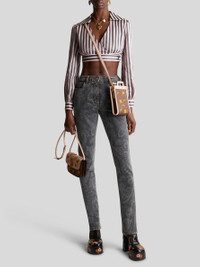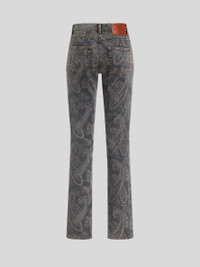 Stretch cotton denim skinny jeans from the Women's Fall-Winter 2023 Fashion Show collection, decorated by all-over Paisley patterns. PRODUCT DETAILS • 98% cotton, 2% elastane • Skinny fit • Five pockets • Button and zip fastening • Metal button • Label with ETRO and Pegaso logo imprinted and applied to rear waist • Made in Italy • The model is 178 cm / 70,07 inches tall and wears size 26