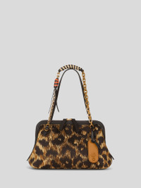 Small Doc bag in raffia with distinctive, refined animal-effect embroidery. This accessory features two mismatched handles: one in plain-coloured leather and a chain one with woven two-tone leather detailing, which allow for shoulder carry. The leather label with embossed Pegaso logo completes the design. • Dimensions (Width, Height, Depth): 10.2 x 6.7 x 3.9 inches (26 x 17 x 10 cm) • Two-way zip closure • Zipped internal slip pocket • Two handles • Made in Italy PRODUCT DETAILS • Exterior: 50% polyamide, 50% cotton • Details: calfskin • Embroidery: 100% polyester • Interior: 100% cotton