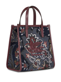 small jacquard Love Trotter bag Highlights - Burgundy/multicolour - Canvas/leather - Floral-patterned jacquard - Signature pegaso logo applique - Logo-engraved metal feet - Two flat top handles - Adjustable detachable shoulder strap - Internal zip-fastening pocket - Gold-tone hardware Made in Italy Composition Outer: Calf Leather 100%, Cotton 40%, Modal 30%, Viscose 20%, Polyester 10%