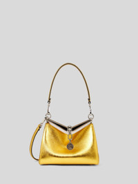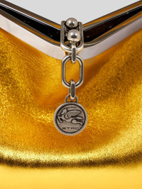 Iconic small Vela bag in laminated leather. This model can be carried by hand or on the shoulder, thanks to the detachable, interchangeable shoulder strap and handle. This model stands out for its distinctive metal fastening and the medallion bearing the ETRO logo and Pegaso symbol engraved using the same technique used to mint coins. PRODUCT DETAILS • 100% leather