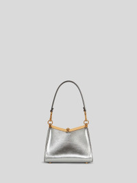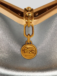 Iconic small Vela bag in laminated leather. This model can be carried by hand or on the shoulder thanks to the detachable and interchangeable strap and handle. This model stands out for its distinctive metal closure and the medallion bearing the ETRO logo and Pegaso symbol engraved using the same technique used to mint coins. • Dimensions (Width, Height, Depth): 8.3 x 6.3 x 3.5 inches (21 x 16 x 9 cm) • Removable handle and shoulder strap • Metal feet • Golden-finish metal details • Made in Italy PRODUCT DETAILS • Exterior: lambskin • Lining: cowhide
