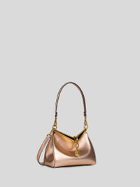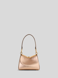 Iconic small Vela bag in laminated leather. This model can be carried by hand or on the shoulder thanks to the detachable and interchangeable strap and handle. This model stands out for its distinctive metal closure and the medallion bearing the ETRO logo and Pegaso symbol engraved using the same technique used to mint coins. • Dimensions (Width, Height, Depth): 8.3 x 6.3 x 3.5 inches (21 x 16 x 9 cm) • Removable handle and shoulder strap • Metal feet • Golden-finish metal details • Made in Italy PRODUCT DETAILS • Exterior: lambskin • Lining: cowhide