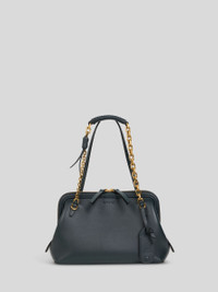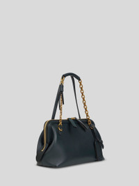 Small DOC shoulder bag made from soft plain-coloured leather. This accessory, presented at the Autumn-Winter 25 Runway Show, stands out for its mismatched handles—one leather and one chain with tubular leather inserts—and is complete with a leather tag holder with embossed Pegaso logo. • Dimensions (Width, Height, Depth): 10.2 x 6.7 x 3.9 inches (26 x 17 x 10 cm) • Two handles • Zip closure • Golden-finish metal accessories • Leather tag holder with embossed logo • Made in Italy PRODUCT DETAILS • Exterior: calfskin • Lining: cowhide