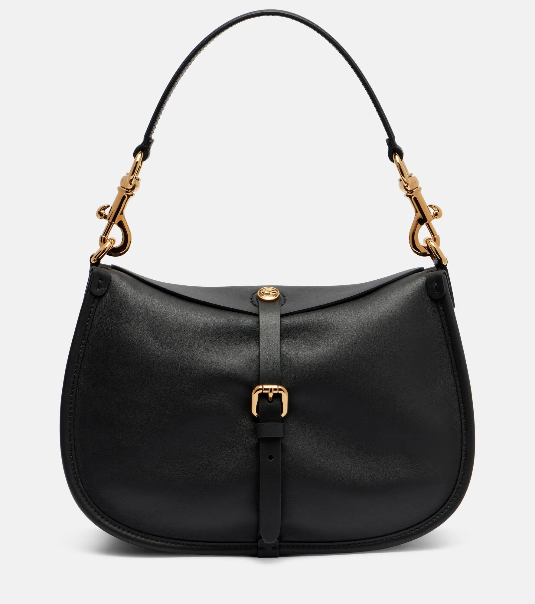 This Small tote bag from Etro is made in Italy with leather. The design features a detachable top handle and a detachable, adjustable shoulder strap. An internal slot pocket adds practicality to the style. Product Details - Material: leather - Lining: suede - Made in Italy - Designer color name: Nero - Item color: black - Closure: buckle fastening , magnetic fastening - Detachable top handle, Detachable, adjustable shoulder strap - Internal details: single compartment, internal slot pocket - Includes: dust bag - Item number: P01054877 Size & Fit - Height 20cm-8" - Width 30cm-12" - Depth 10cm-4" - Length of handle 45cm-17.5" - Adjustable shoulder strap - Max. length shoulder strap 110cm-43.5"