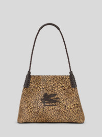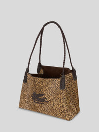 Small Libra leather tote bag in animal-print calfskin, embellished with an embroidered patch featuring the ETRO logo and Pegaso symbol on the front. This accessory, presented at the Autumn-Winter 25 Runway Show, is complete with a convenient inner clutch. • Dimensions (Width, Height, Depth): 13 x 10.2 x 5.3 inches (33 x 26 x 13.5 cm) • Clasp closure • Two handles • Metal feet • Made in Italy PRODUCT DETAILS • Exterior: calfskin • Lining: cowhide