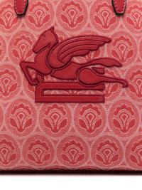 small Love Trotter tote bag Highlights - Red - Cotton - Denim - Open top - Two top handles - Adjustable detachable shoulder strap - Leather trim - Jacquard floral motif - Signature pegaso motif - Logo patch to the front - Main compartment - Internal zip-fastening pocket - Debossed internal logo - Full lining Made in Italy Composition Outer: Cotton 100%, Calf Leather 100% Lining: Polyester 100% SIZE & FIT Model measurements Height 5 ft 10 in(1.77 m) Bust/Chest 33.07 in(84 cm) Hips 37 in(94 cm) Waist 24.8 in(63 cm) Measurement DEPTH 5.51 in(14 cm) HANDLE 3.93 in(10 cm) HEIGHT 8.85 in(22.5 cm) STRAP 50.39 in(128 cm) WIDTH 8.66 in(22 cm)