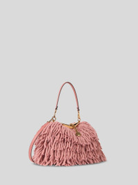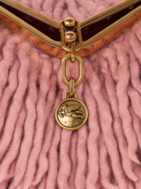 Iconic small Vela bag in wool, covered with soft fringing all over. This model can be carried by hand or on the shoulder thanks to the detachable and interchangeable strap and handle. This piece stands out for its distinctive metal closure and the medallion bearing the ETRO logo and Pegaso symbol engraved using the same technique used to mint coins. • Dimensions (Width, Height, Depth): 8.3 x 6.3 x 3.9 inches (21 x 16 x 10 cm) • Interchangeable handle and shoulder strap • Metal feet • Golden-finish metal accessories • Made in Italy PRODUCT DETAILS • 90% wool, 10% polyester • Details: calfskin • Fringe details: 50% wool, 50% acrylic • Lining: calfskin
